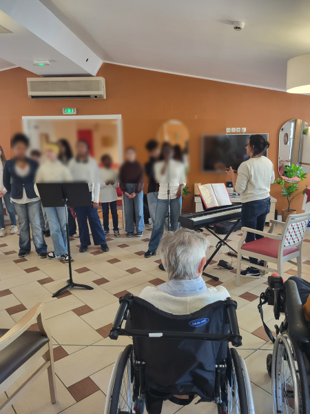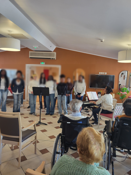 Les collégiens sont venus chanter quelques chansons à la résidence. Leurs belles mélodies ont fait du bien aux résidents, qui ont ainsi passé un très agréable après-midi.