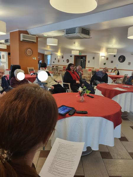 Après la projection d’un film touchant et informatif sur la maladie d’Alzheimer, les résidents ont participé à un quiz en lien avec le thème abordé. Le film a été suivi avec beaucoup d’attention, suscitant à la fois des émotions et des discussions. Le quiz, quant à lui, a permis de stimuler la mémoire, de renforcer les connaissances autour de la maladie et de créer un moment convivial et interactif.