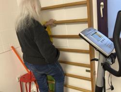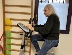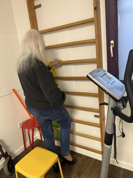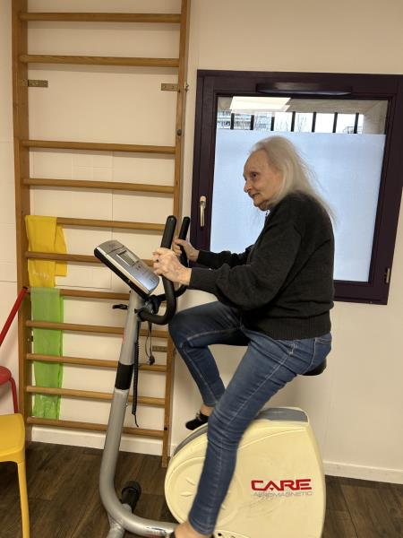 La séance a débuté par un travail de renforcement musculaire sur vélo, adapté au rythme de la résidente afin de favoriser une mobilisation douce des membres inférieurs.